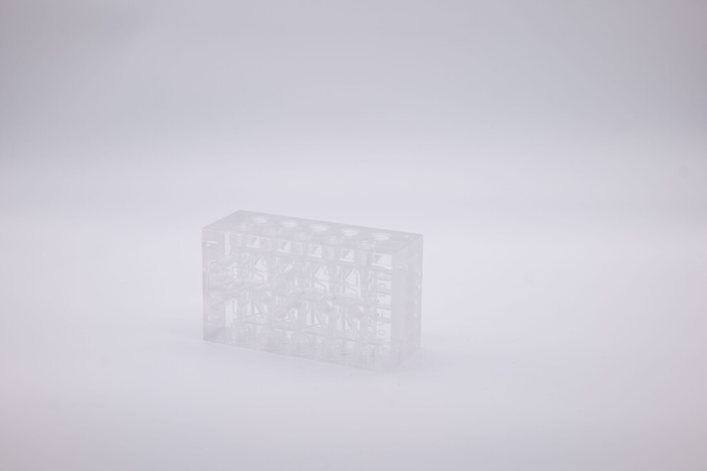 Our machine fleet includes 5 five-axis machining centers (with a working cube of 250×250 mm) and a palletized machining center. All are equipped and operated by professionals who, with care and experience, ensure dimensional control and product quality.